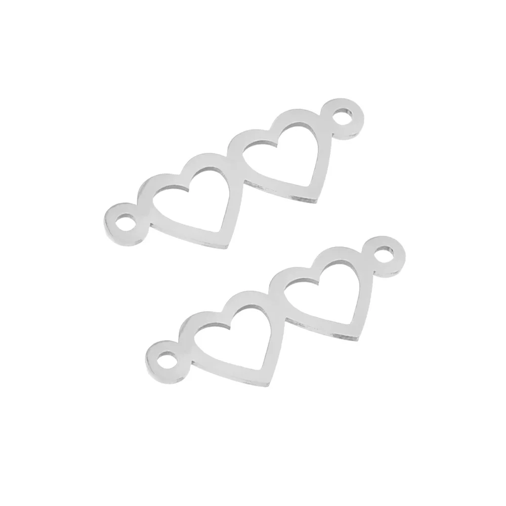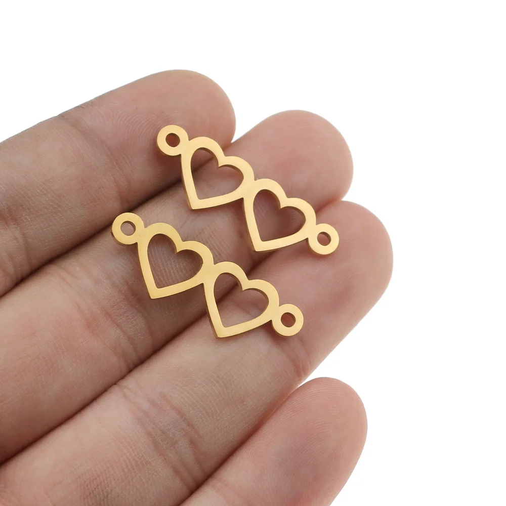 5 шт.лот, коннектор из нержавеющей стали с двумя сердечками для браслета, ожерелья, ажурные подвески, принадлежности для самостоятельного изготовления ювелирных украшений