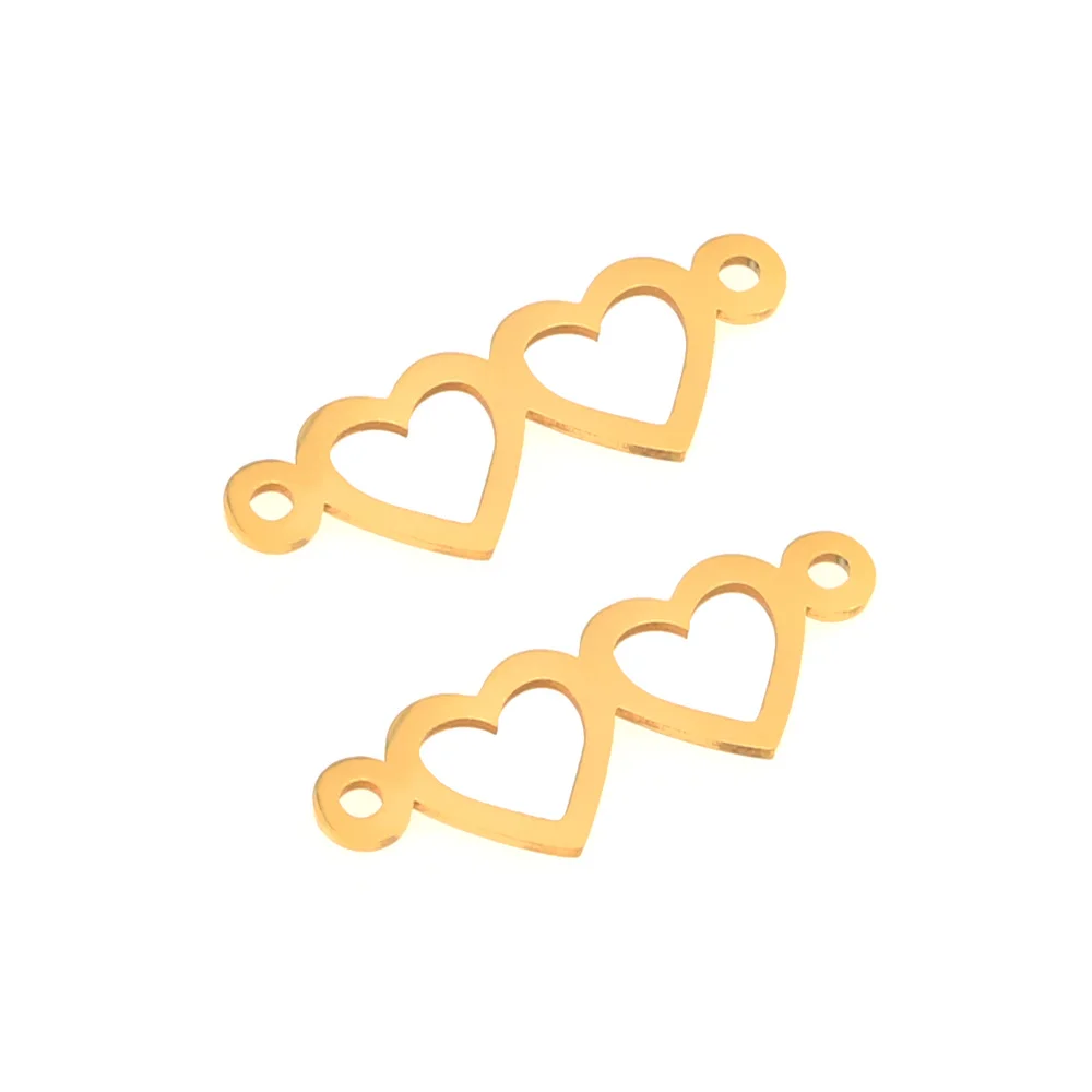 Название:5 шт./лот, золотой соединитель из нержавеющей стали с двойным сердцем для браслета, ожерелья, Полые Подвески, сделай сам, принадлежности для изготовления ювелирных изделий