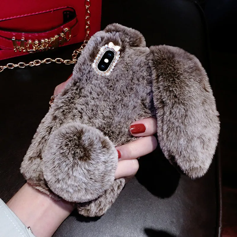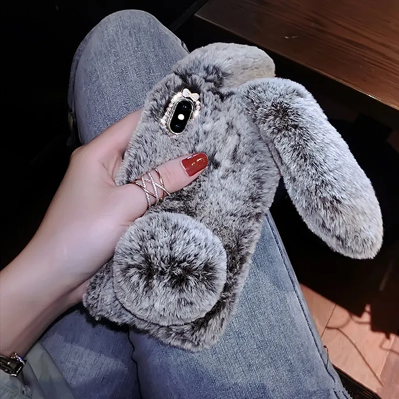 Характеристикиfashion Fluffy Rabbit Fur Cute Silicone Cover Bunny Plush Phone Case