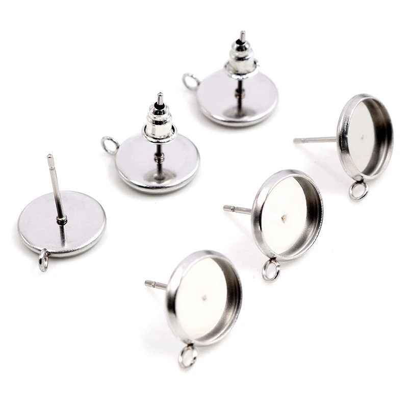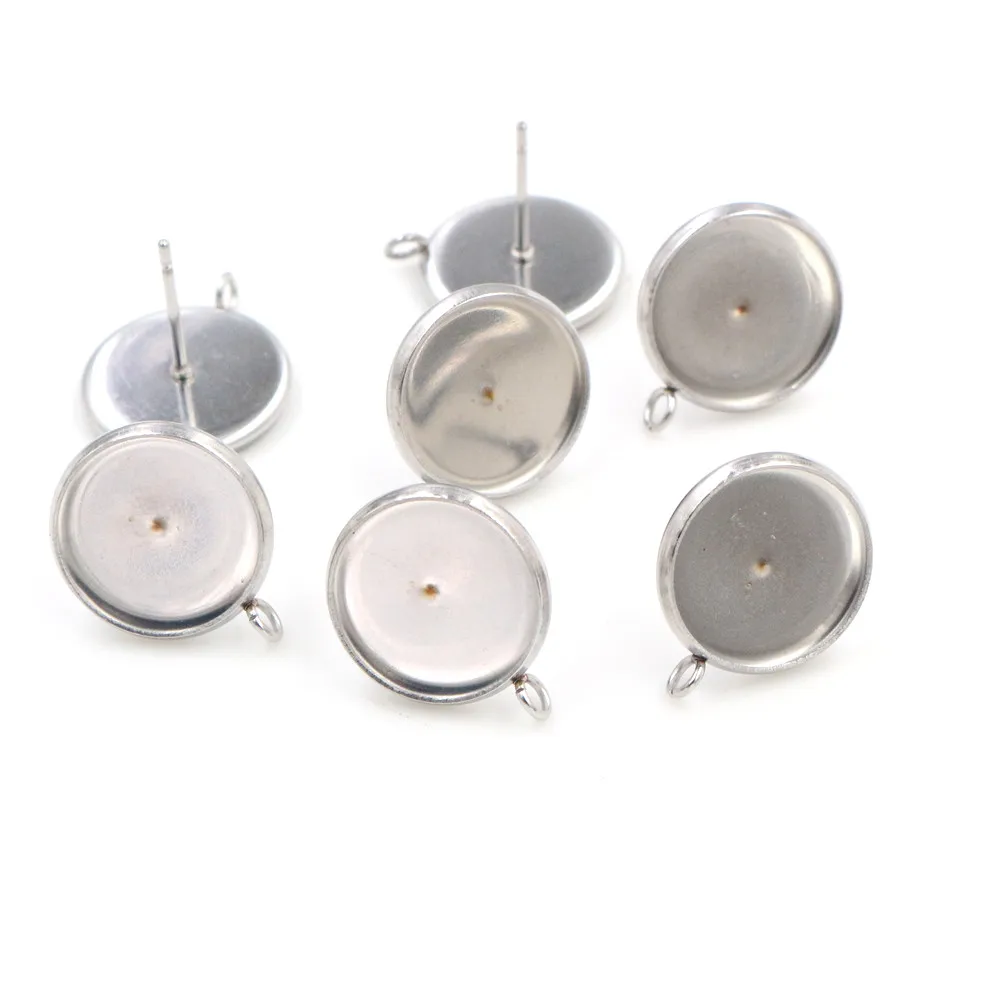 (Не выцветает) 6- 12 мм 20 шт нержавеющей стали вертикальные висячие серьги шпильки, серьги пустыеоснование, подходит 6- 12 мм Стеклянные Кабошоны, кнопки