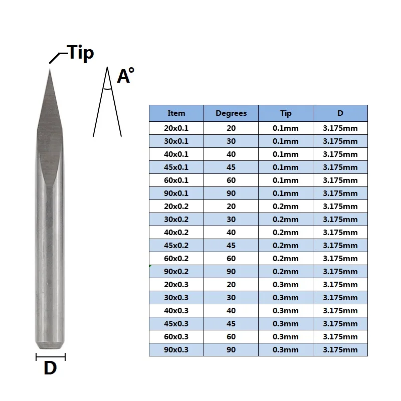 Фреза XCAN, 3 кромки, пирамидальная гравировка, хвостовик 3,175 мм, 10 шт., 203040456090 градусов, фрезерный станок с ЧПУ, фрезерный инструмент по дереву