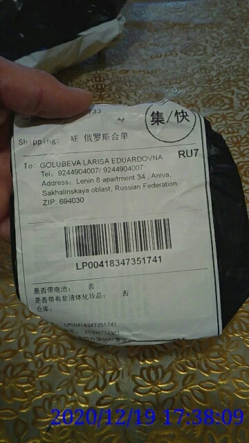 Страна: RU Color: 1PC Доставка: Cainiao Super Economy 21.12.2020