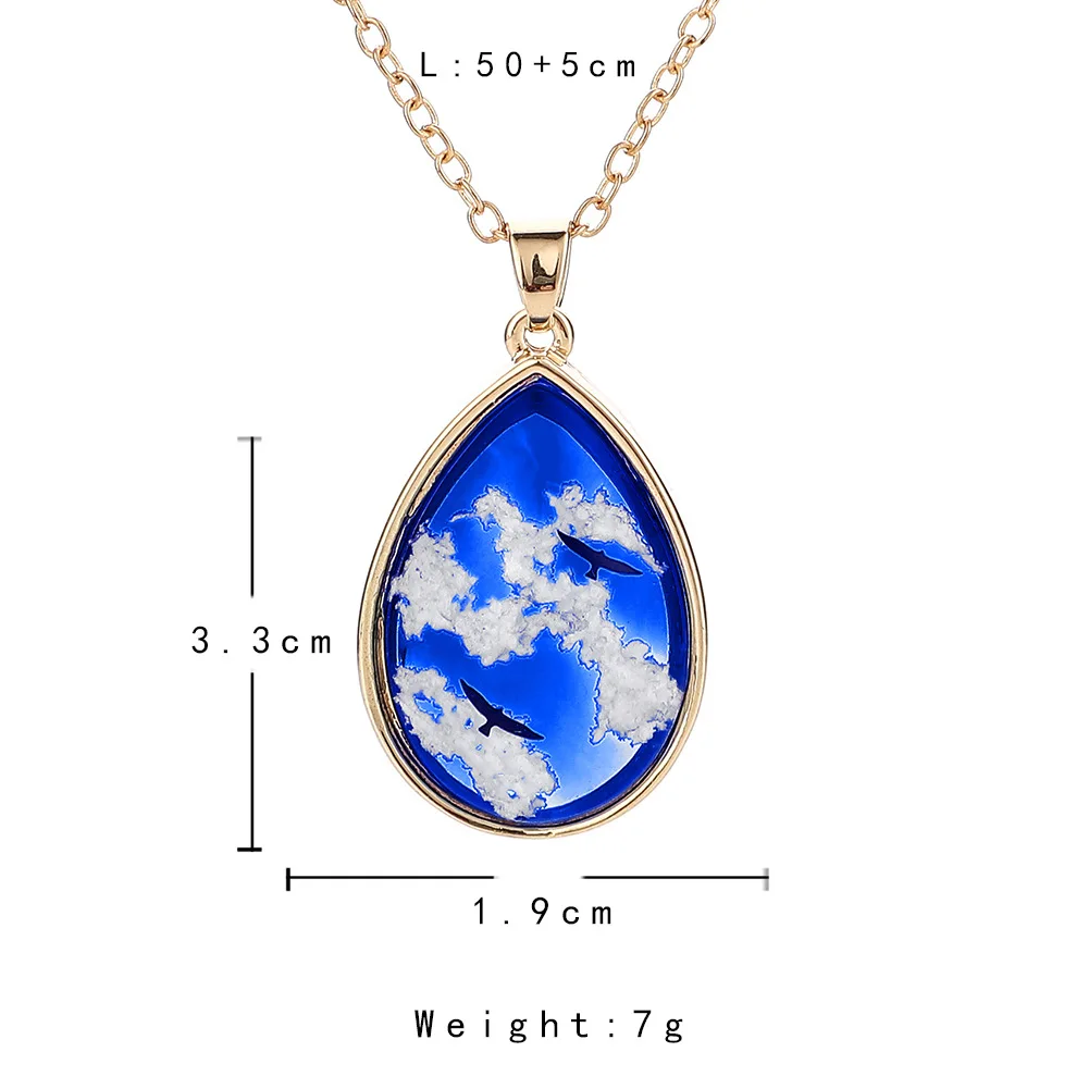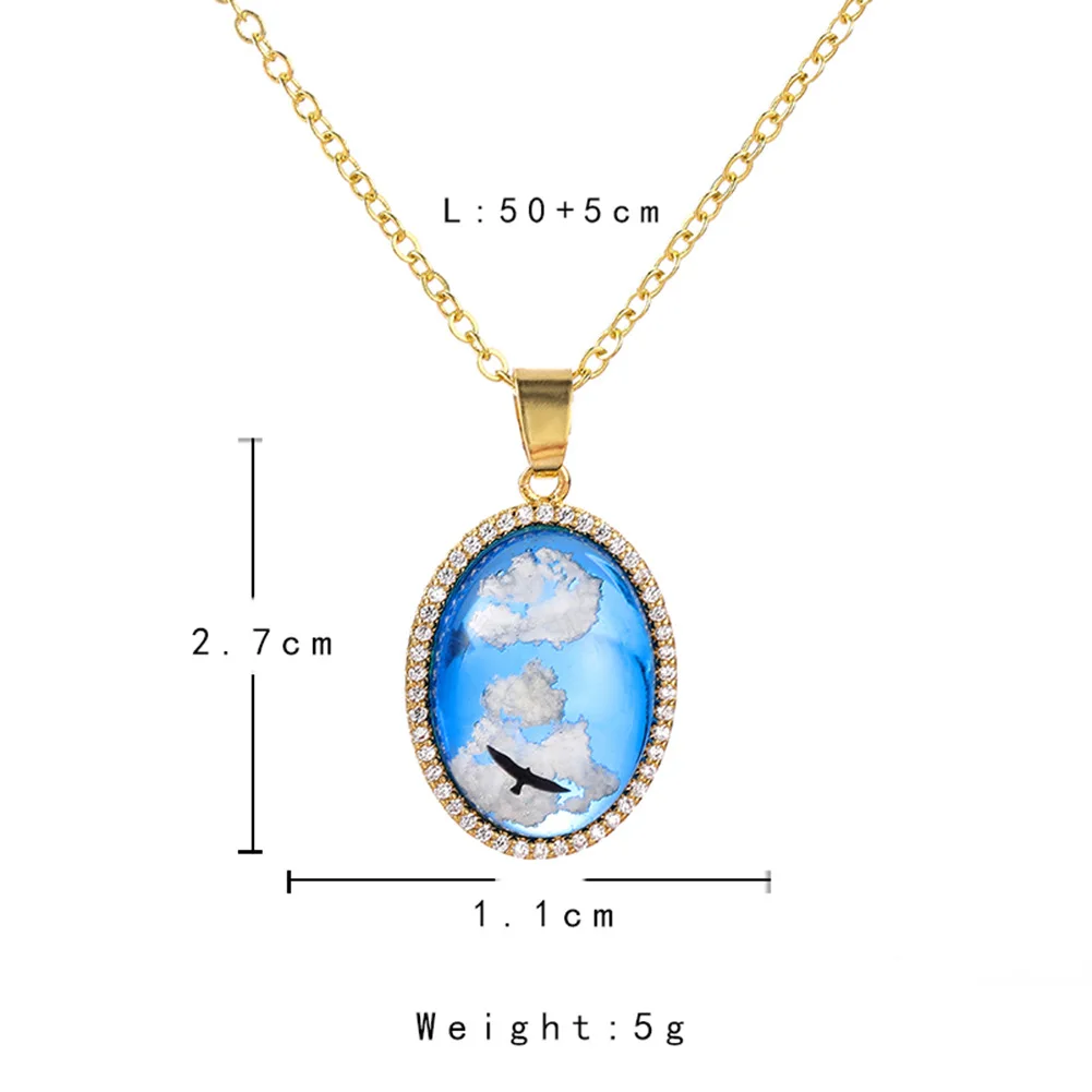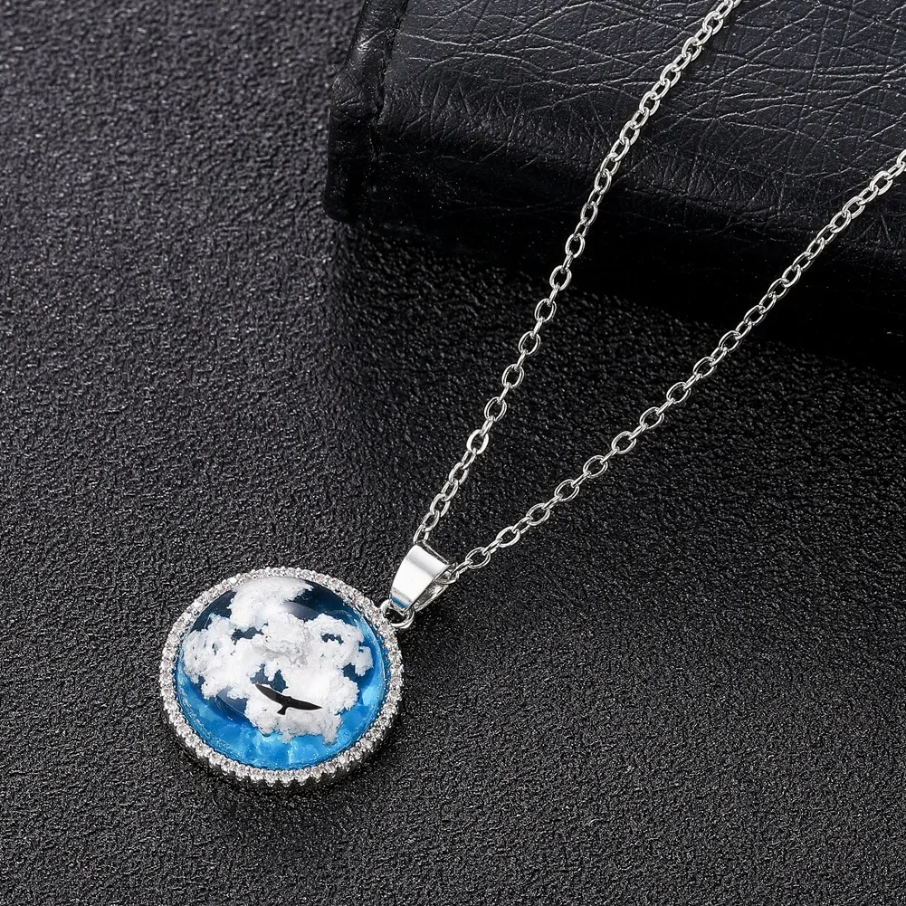 2022 подвеска с рисунком голубого неба и белых облаков, ожерелье ручной работы, подвеска в форме шара из смолы для женщин и мужчин, модный подарок