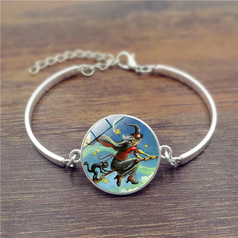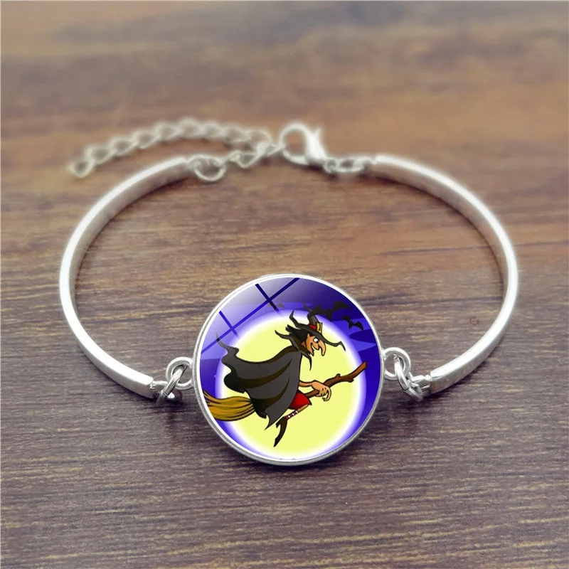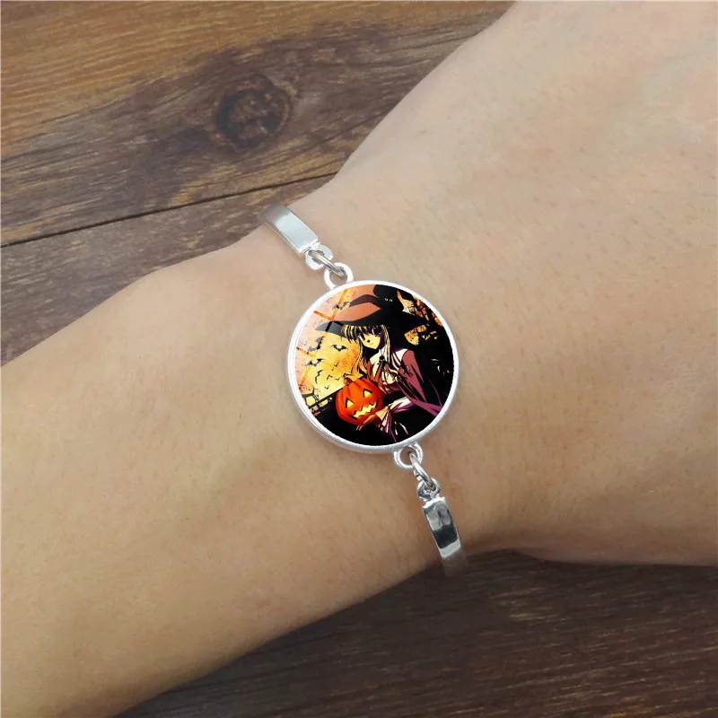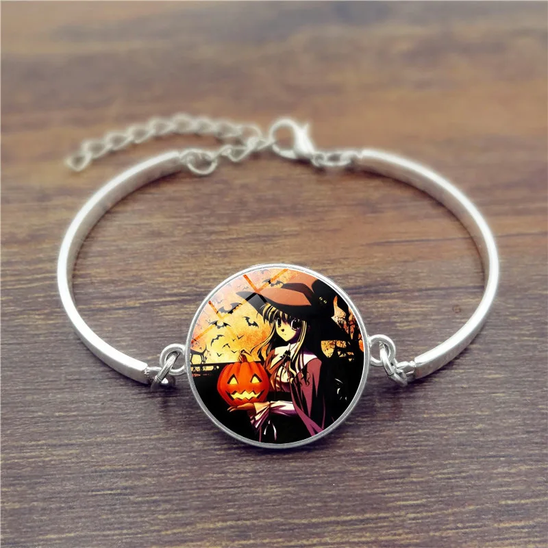 2019 модный браслет на Хэллоуин со стеклянным куполом летучая мышь Луна с узором простой браслет с крючком серебряного цвета для мужчин женщин праздничное ювелирное изделие в подарок