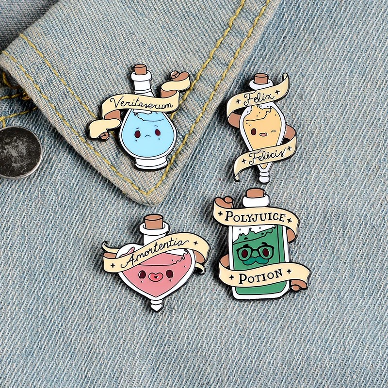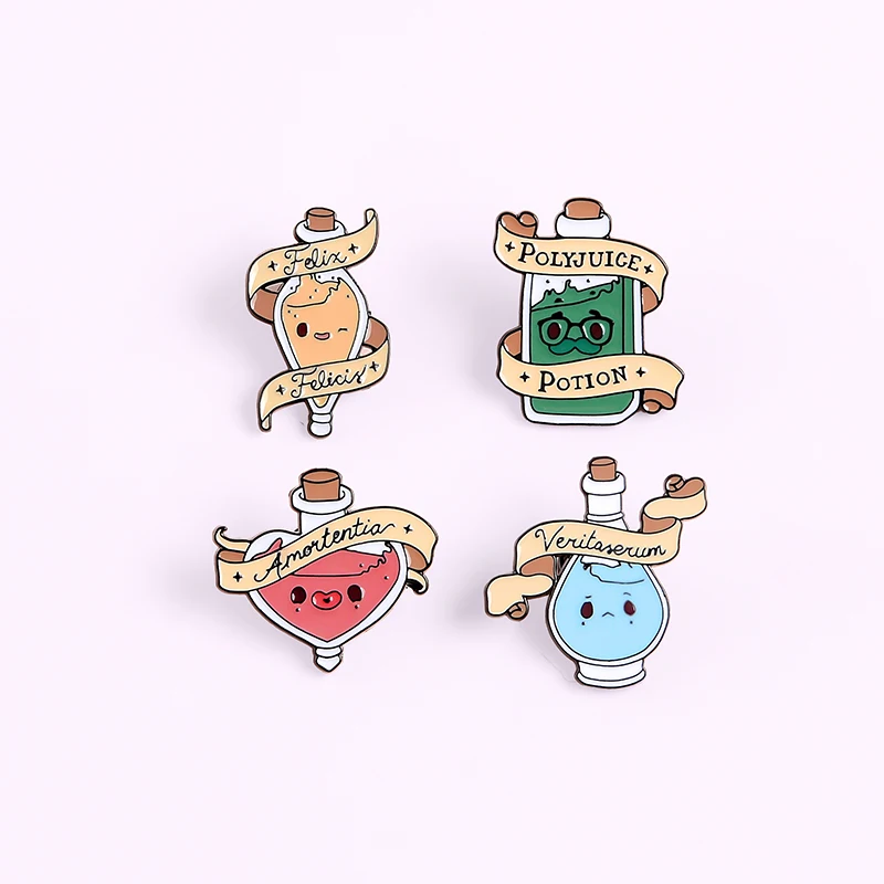 Эмалированная булавка в виде флакона с героями мультфильмов, 4 вида, набор значков волшебства, рюкзак, сумка, аксессуары для шляпы, подарки на Хэллоуин