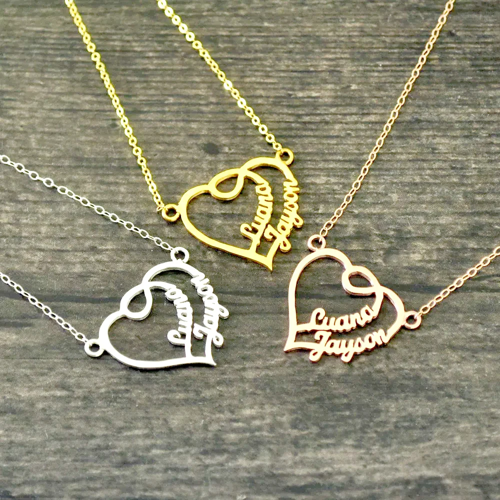 Ожерелья из нержавеющей стали с индивидуальным именем и кулоном сердечка, персонализированное ожерелье для женщин, подарок подружки невесты