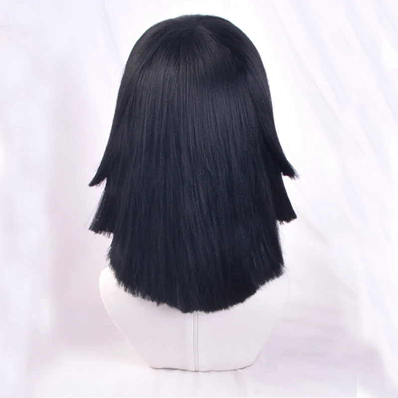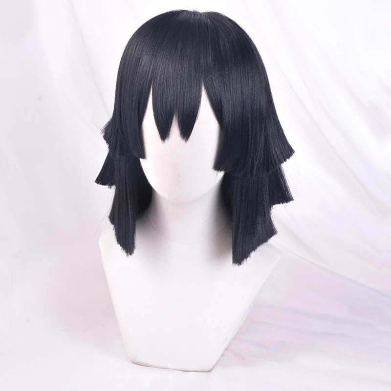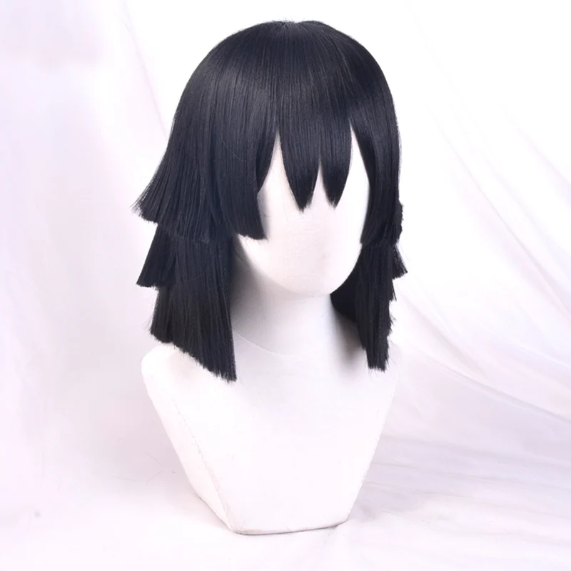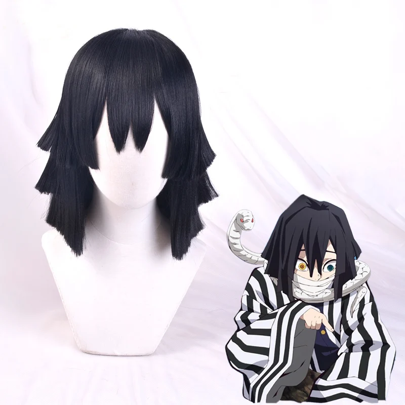 Парик Iguro Obanai для косплея, короткие термостойкие волосы для косплея, рассекающий демонов, киметсу, нет яибы, с шапочкой