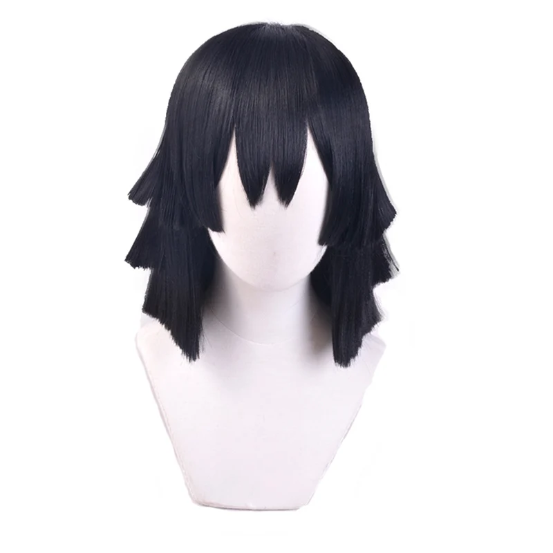 Парик Iguro Obanai для косплея, термостойкий, черный, с шапочкой