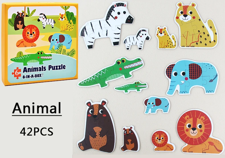 Вес: Aprrox. 350 г-450 г Новинка и высокое качество Отличная развивающая, Экологичная деревянная игрушка Каждая деталь отмечена другим номером и английской буквой Отличный вспомогательный инструмент для разработки подсчета и определения цветов Может использоваться в качестве обучающего и обучающего инструмента в школах и детских садах; Подходит для ловкости детей. Размеры посылка: 19*19*4 см Красочная животная головоломка с большими массивными частями. Материал: дерево