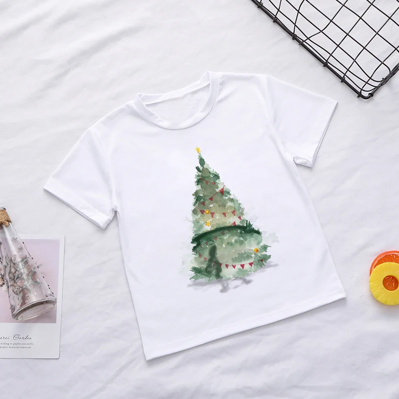Забавная модная повседневная детская футболка с рисунком рождественской елки, футболка для девочек, детские милые футболки для мальчиков с круглым вырезом, дизайн bal561