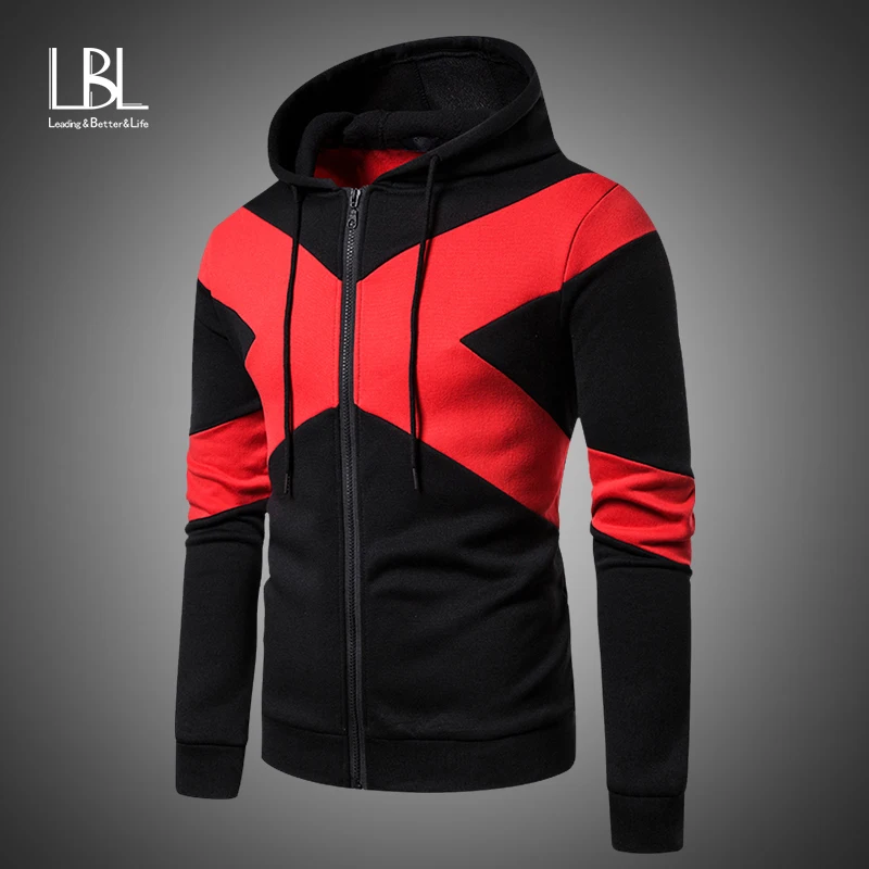 Мужские лоскутные толстовки на молнии классические Modis Зимние толстовки, свитшоты, куртки, пальто Топы с длинным рукавом Повседневные мужские спортивные толстовки