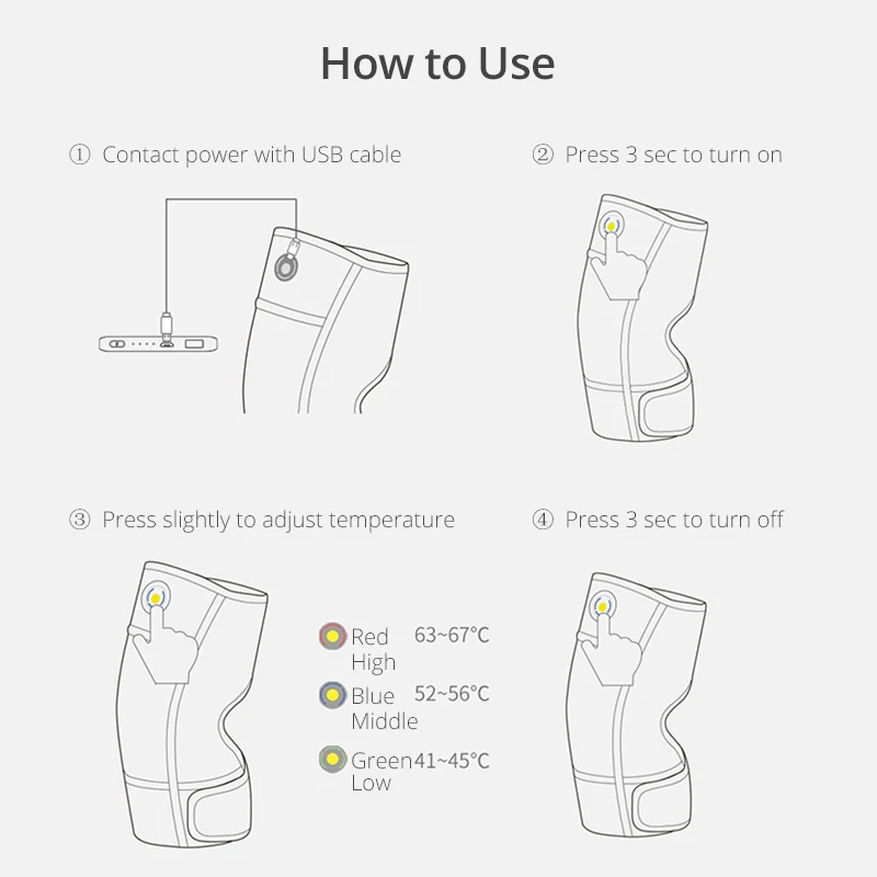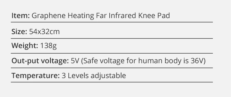 Наколенник Графен с инфракрасным подогревом, 3 уровня температуры, 3 сек, быстрый нагрев, 5 В, безопасное напряжение, моющийся наколенник, инфракрасная терапия