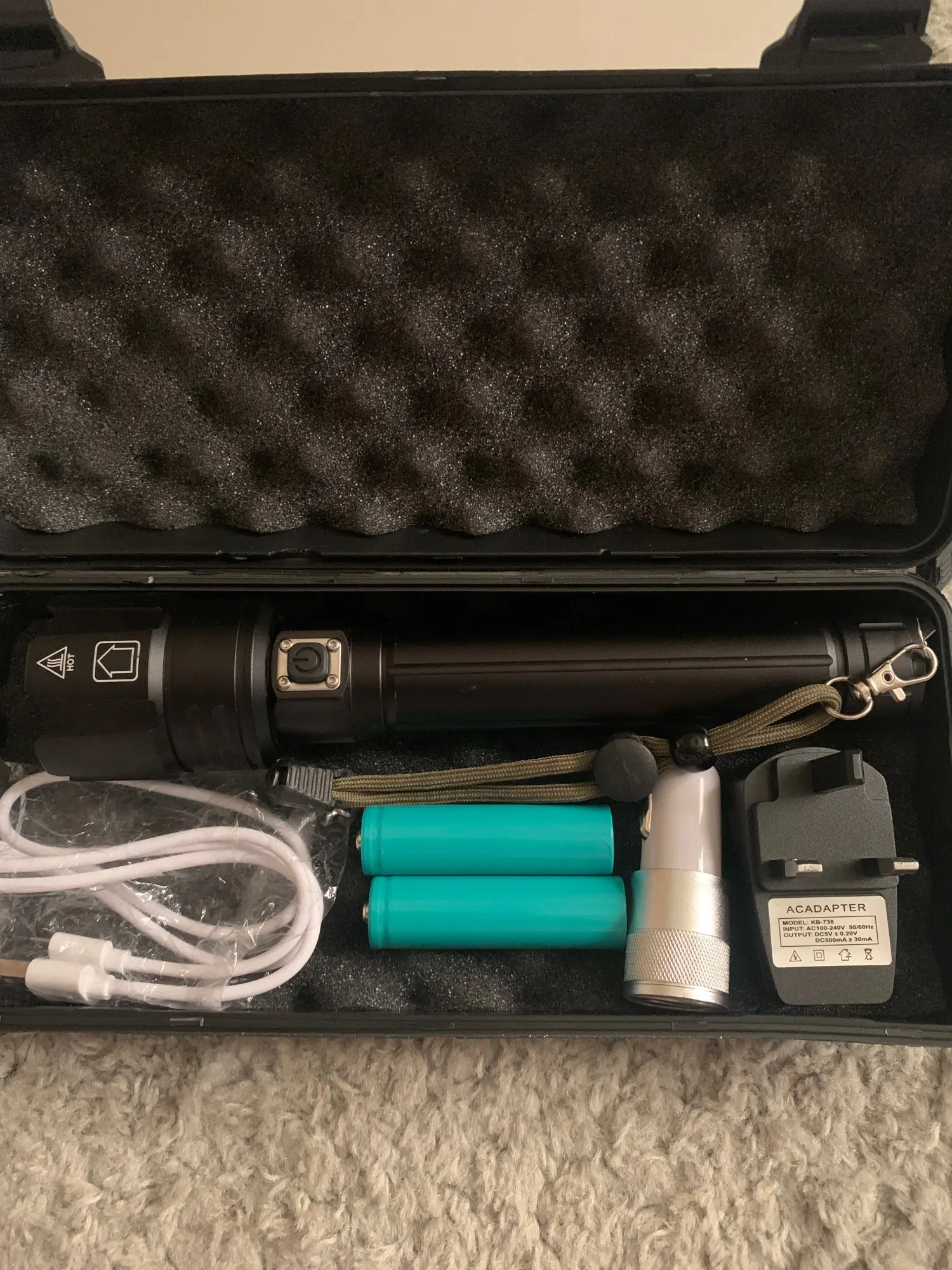 Идеальная, высокая яркость, прочная конструкция, скользящий фокус, достаточно упакована. В качестве бонуса есть адаптер для аккумулятора 3A, который не помещается в фонарик и зарядное устройство с «штепсельной вилкой европейского стандарта», который не помещается в розетку европейского стандарта (рис. 5). :-)