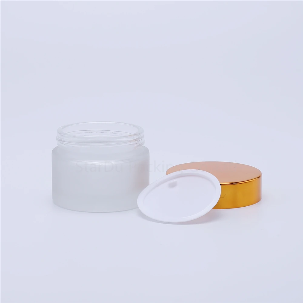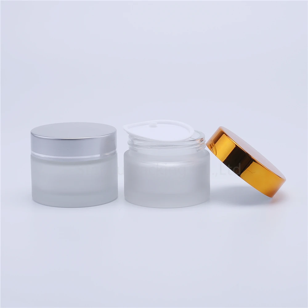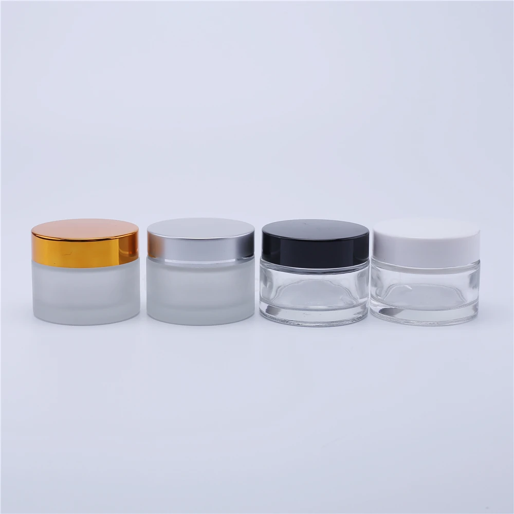 Стеклянные банки для крема, 1 шт., 50 г, косметическая упаковка с крышкой, пластиковые крышки и внутренние вкладыши, круглые пустые маленькие стеклянные банки