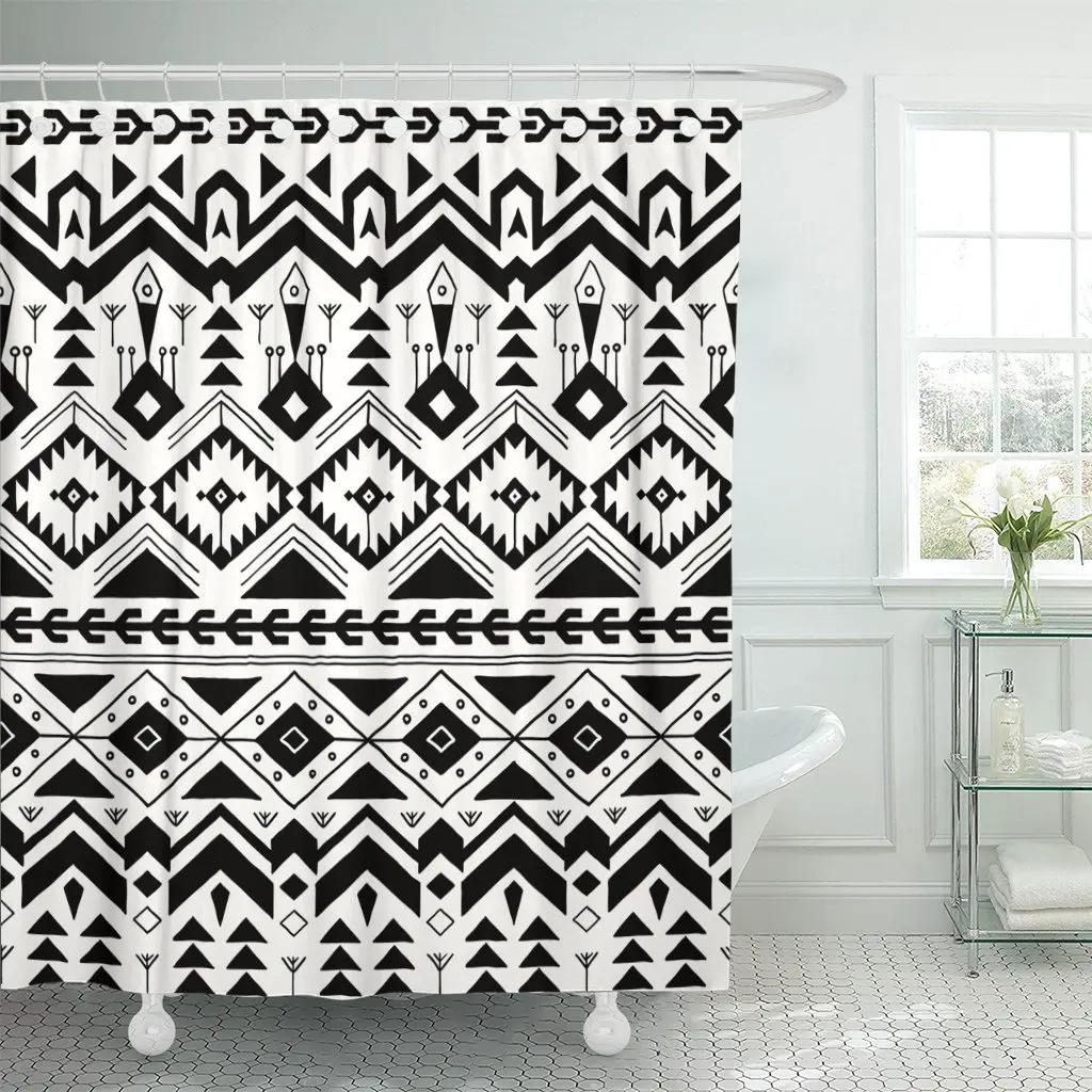 Ацтекский Племенной носки без пятки с рисунком Стиль Черный и белый с этническими геометрическими душ Шторы Водонепроницаемый полиэстер Ткань 72x72 дюйма набор