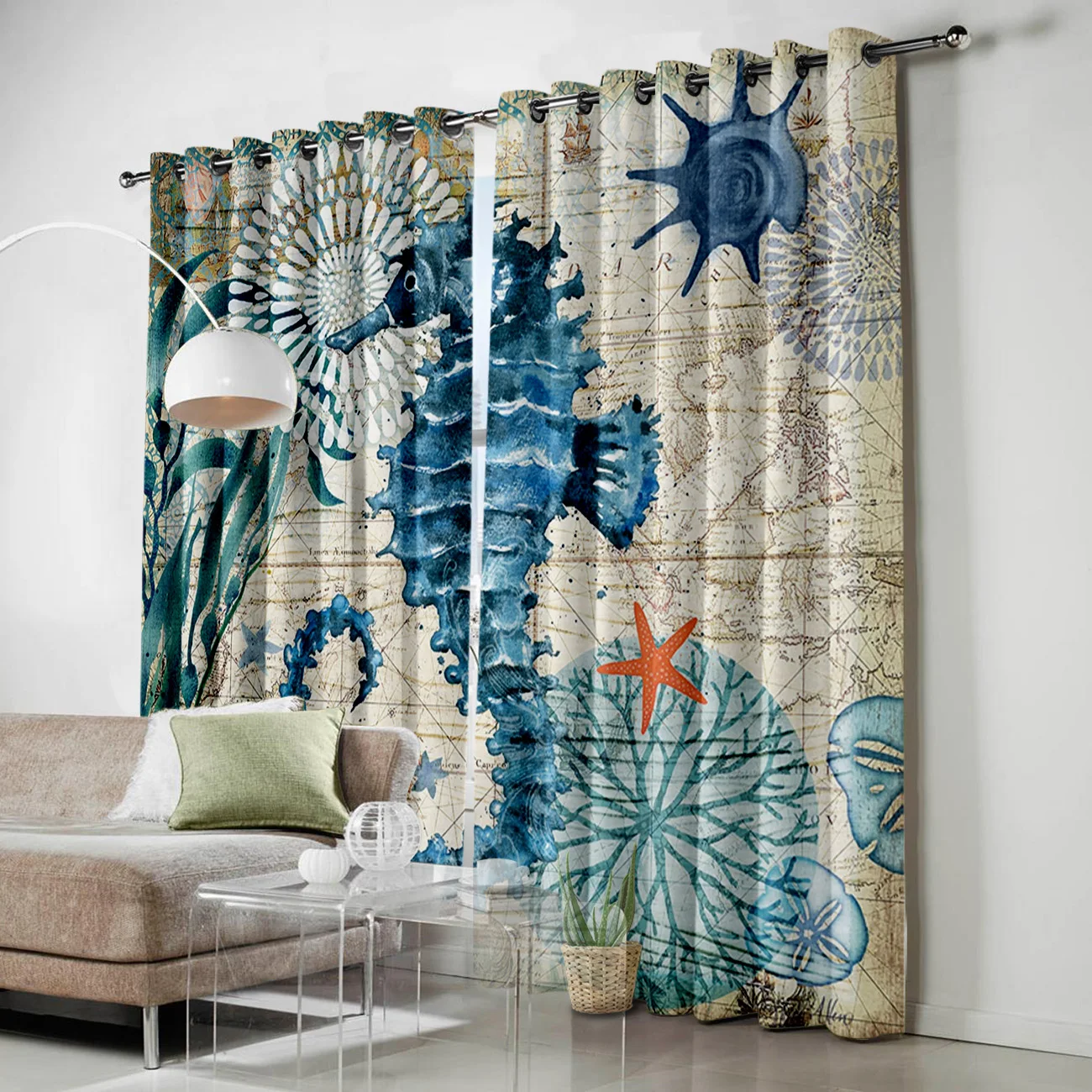 Морской стиль морские шторы для гостиной, большие оконные шторы, ванная комната, кухня, комнатные шторы с принтом, шторы на окна