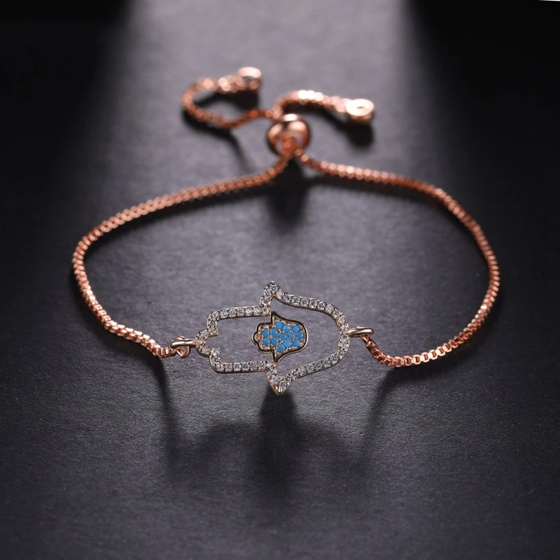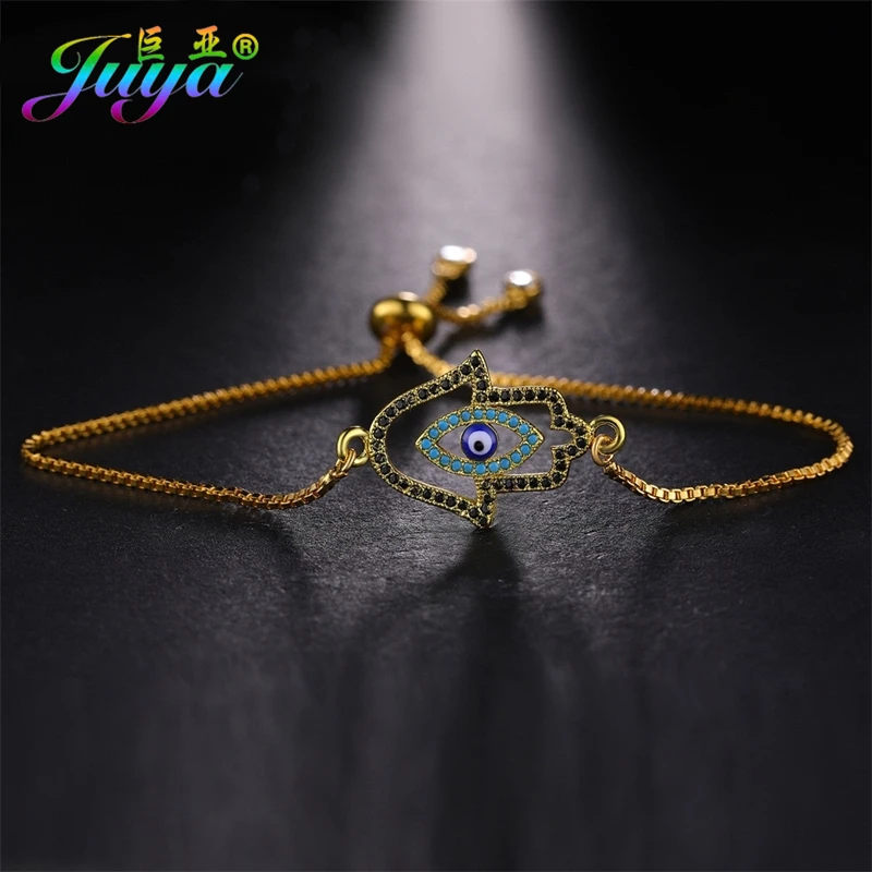 Мужскиеженские регулируемые браслеты Juya из цепочек под золоторозовое золото, ручные браслеты с греческим сглаза Фатимы хамсы