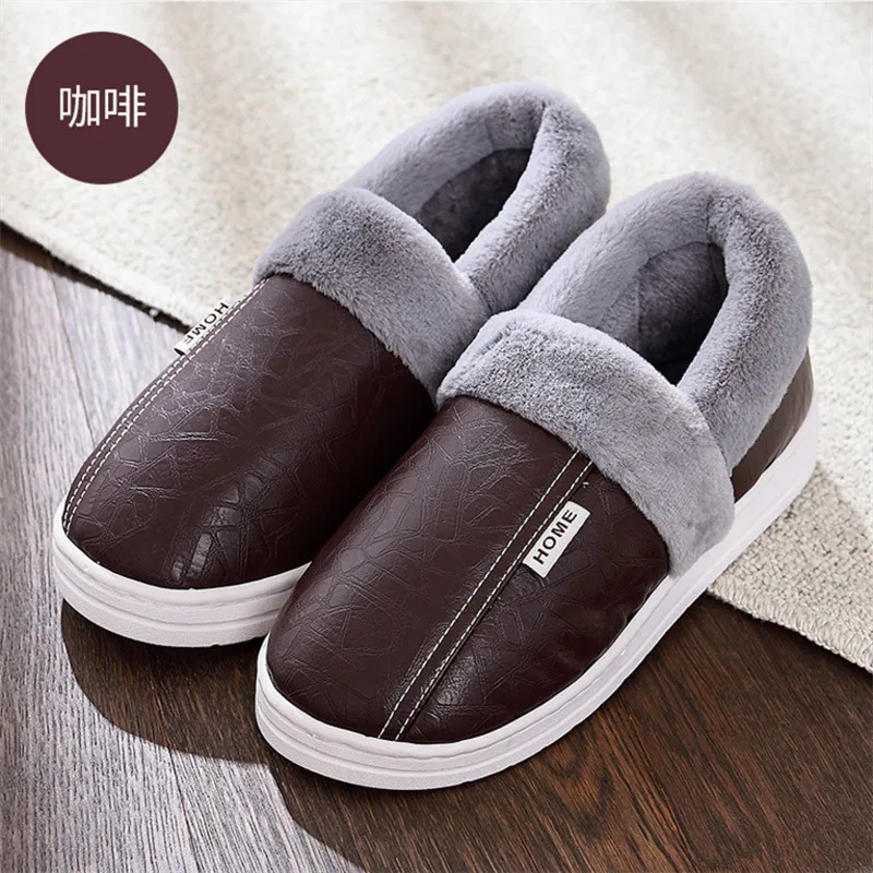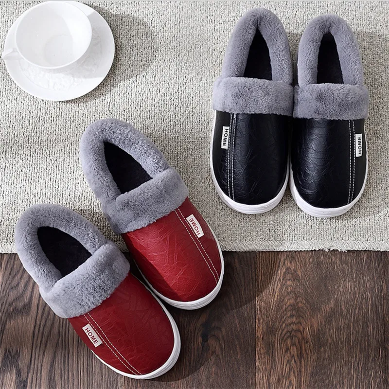 Тапки женские и мужские кожаные, меховые боковые шлепанцы, плюшевые теплые домашние Тапочки