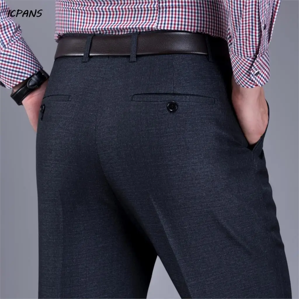 ICPANSмужской костюм большого размера 40, 42, 44, брюки, мужские осенние шерстяные формальные офисные брюки, мужские прямые свободные брюки с высокой талией, 2019