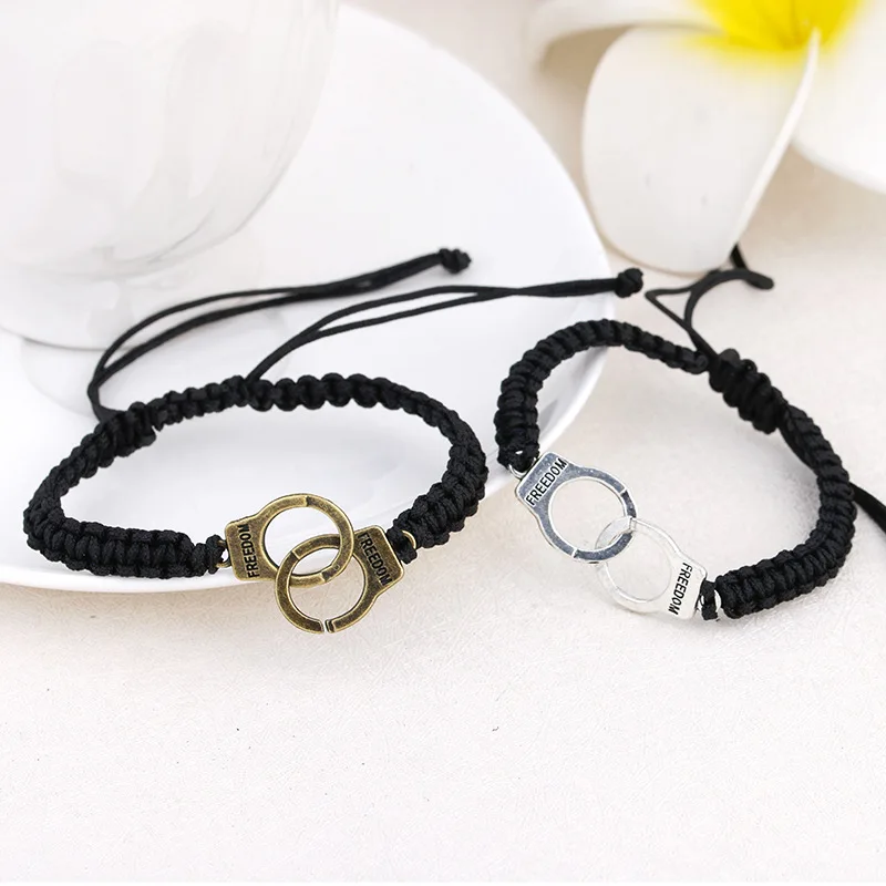 Женский Мужской плетеный браслет ручной работы, регулируемые наручники, пара браслетов, подарок на день Святого Валентина