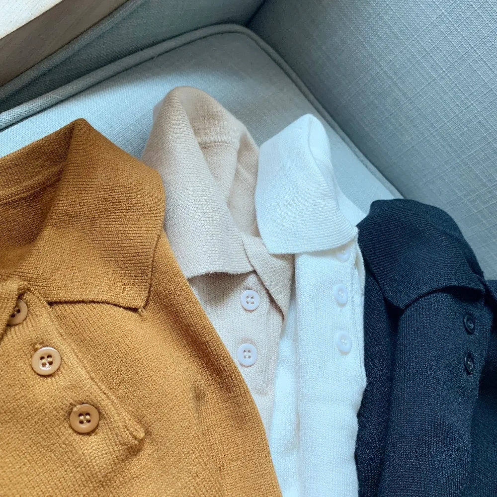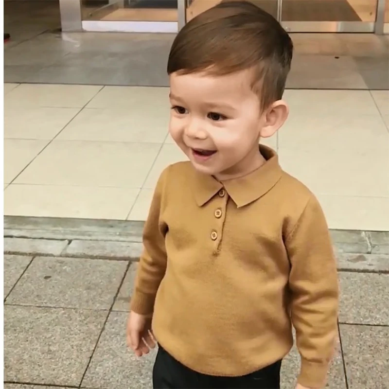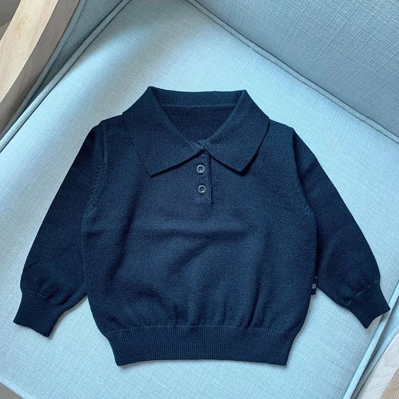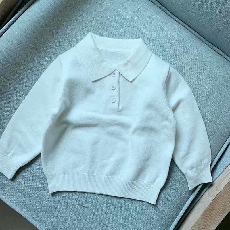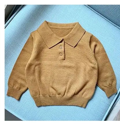 Свитер вязаный однотонный с отложным воротником для мальчиков и девочек 1-5 лет, Осень-зима 2019