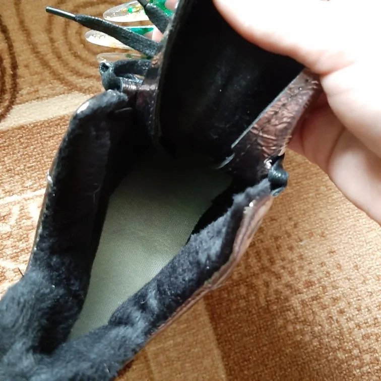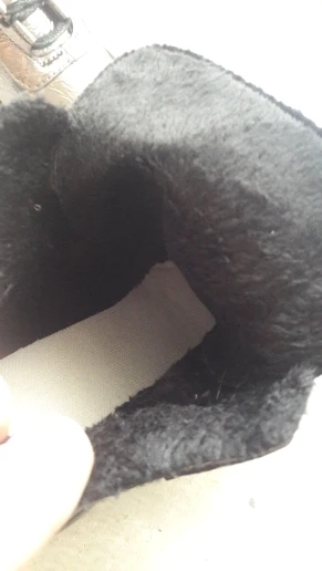 Ужасные ботинки!Внутри подошва не как снаружи,а на пятке стелька как каблук.Получается что пятка вверху,пальцы сползают вниз и упираются в ботинок,что очень неудобно и больно пальцам.К тому же ещё они совершенно холодные-внутри утеплённые бархатной тряпочкой и всё.Потом может дополню фото.Не рекомендую однозначно!Полный обман!Не стоят своих денег.