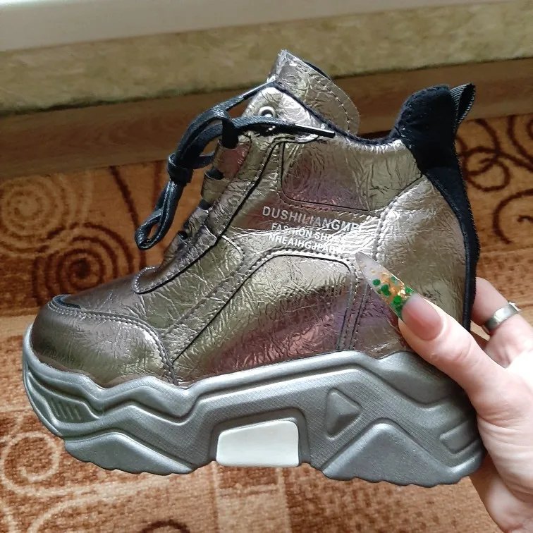 Женские кроссовки на массивной платформе Rimocy, зимние, серебристые, металлические, теплые, повседневные, увеличивающие рост