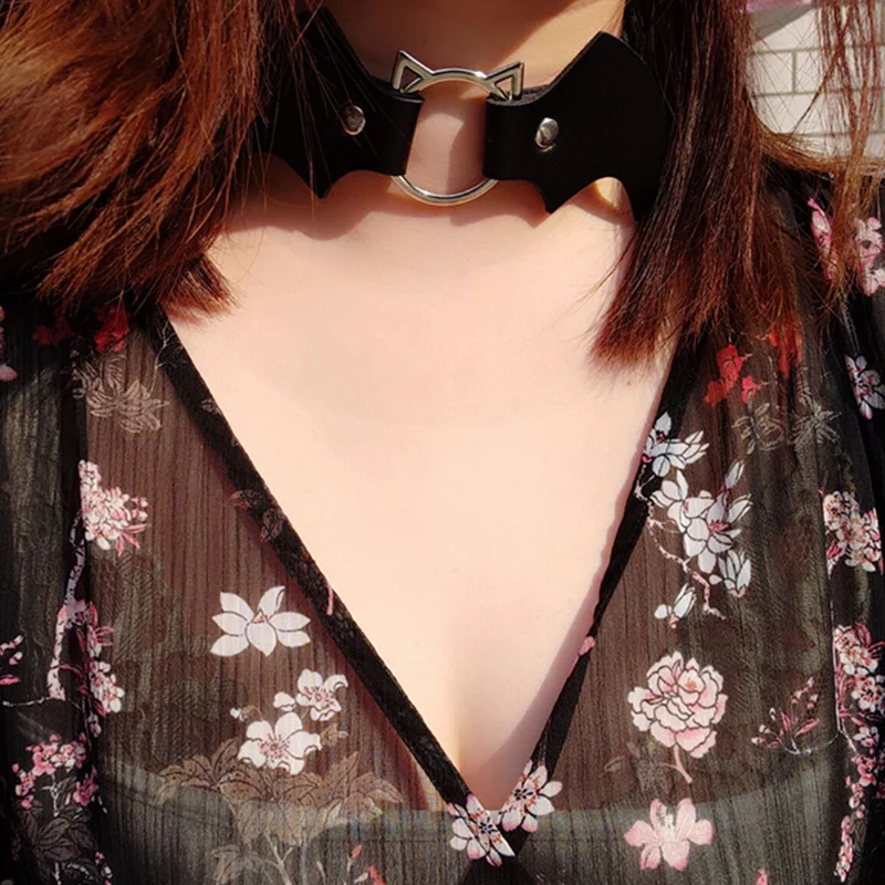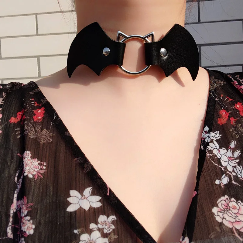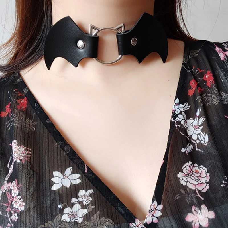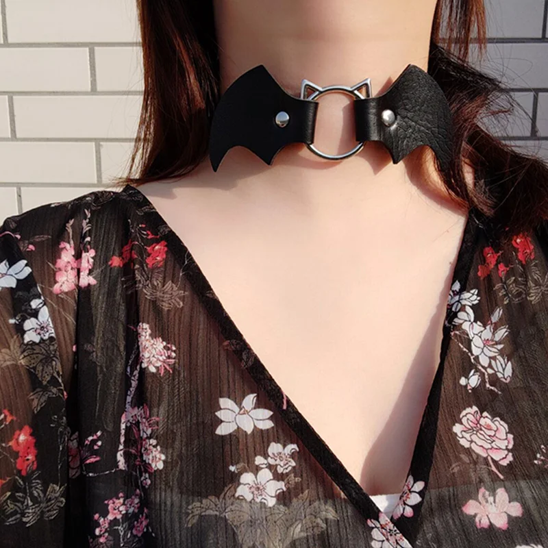 Ожерелье из искусственной кожи в стиле панк и летучая мышь на Хэлло...