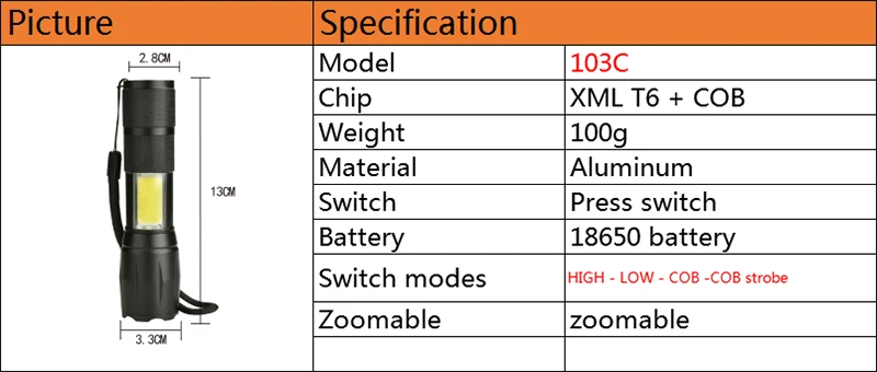 Вариант C:1 * Фонарик(A100), 1 * Micro USB , 1*18650 аккумулятор, 1 * USB разъем, 1 * USB Автомобильное зарядное устройство