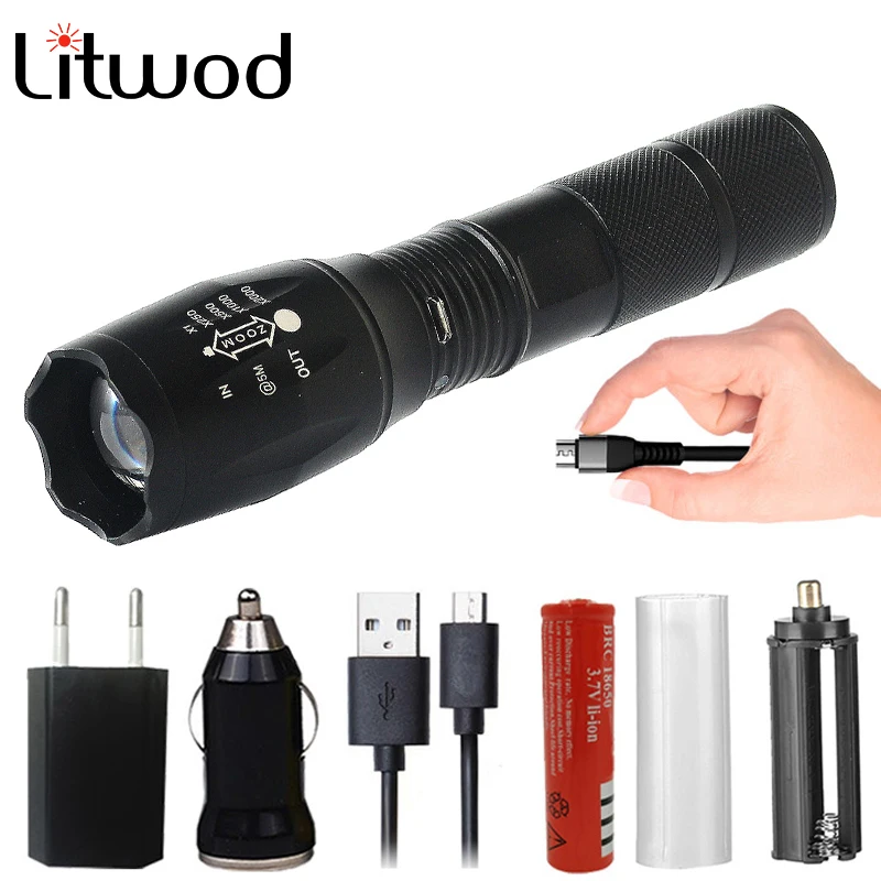 Фонарик Litwod Z20A100, перезаряжаемый светодиодный фонарь с Micro USB и 5 режимами работы, с возможностью масштабирования