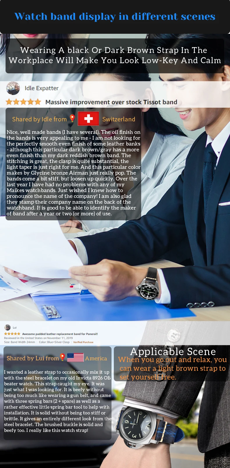 Ремешок кожаный ремешок для часов ручной работы для часов Panerai I...