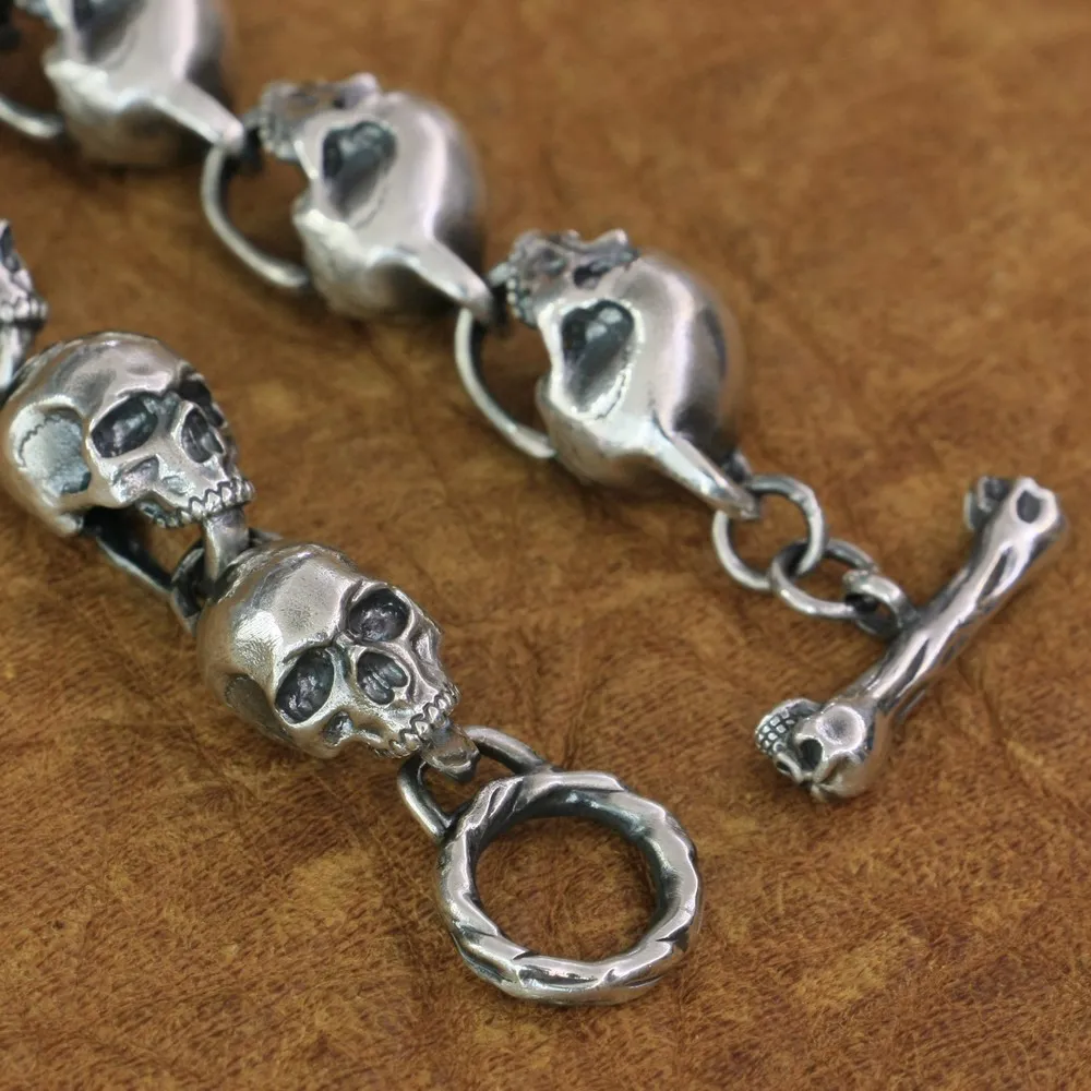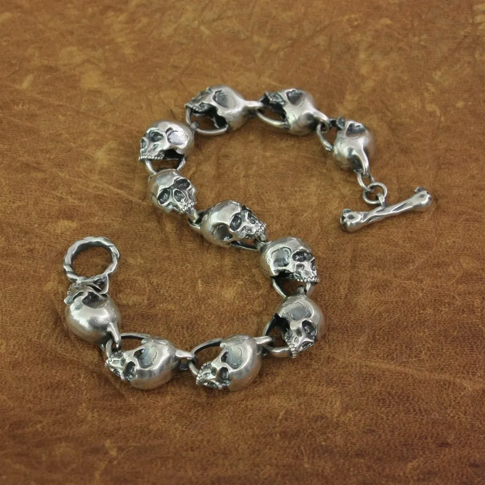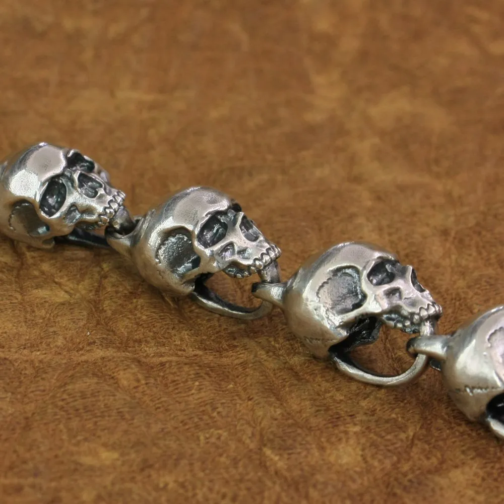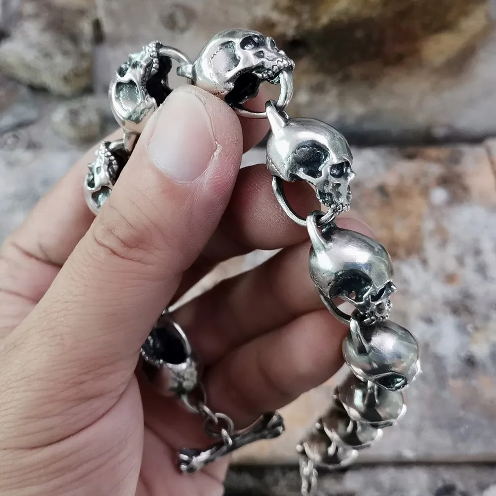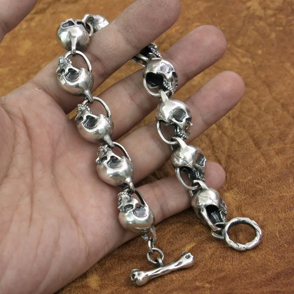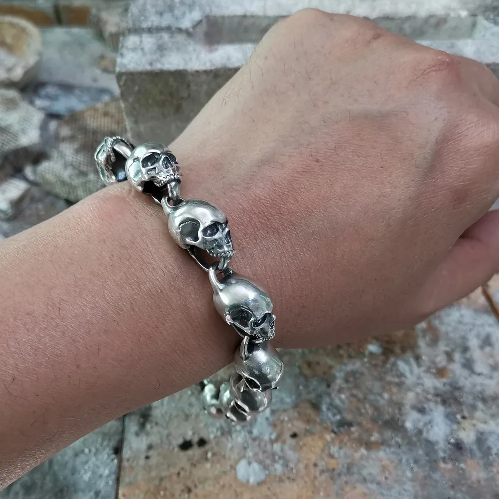 LINSION 925 пробы, серебряный, огромный, детали, черепов, цепь, мужской Байкерский панк браслет TA170