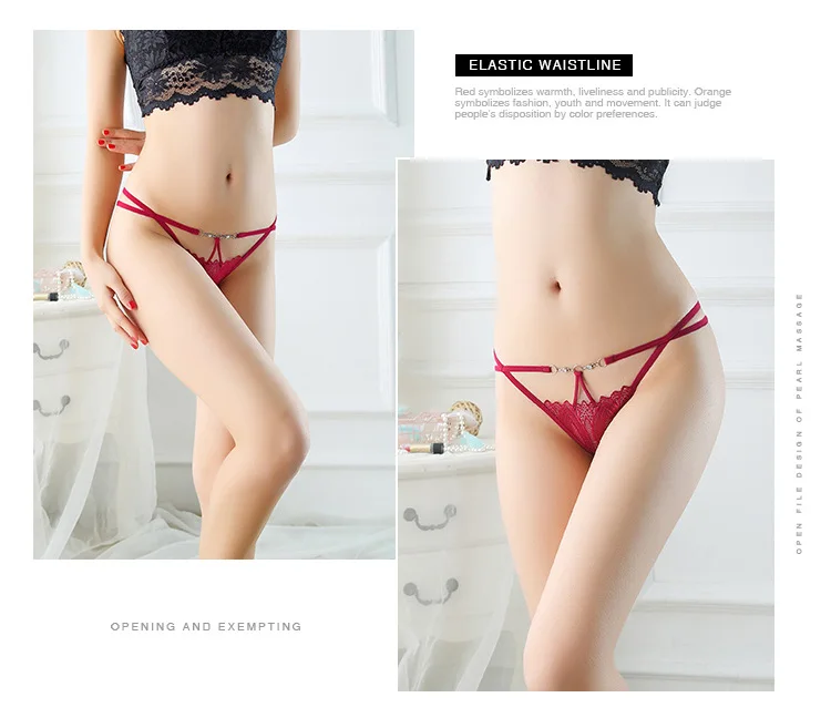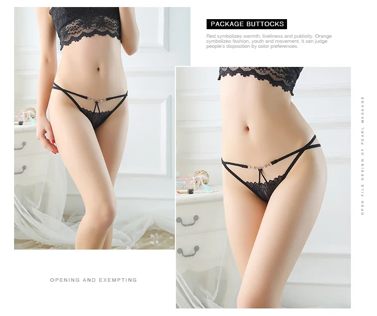 Трусики-стринги женские кружевные с вырезом, трусики с жемчужинами