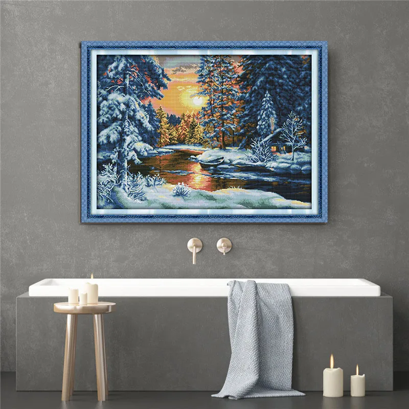 Набор для вышивки крестиком Joy Sunday, закат снега, 14 карат, Набор для вышивки крестиком сделай сам, пейзаж, Набор для вышивки крестиком DMC, домашний декор
