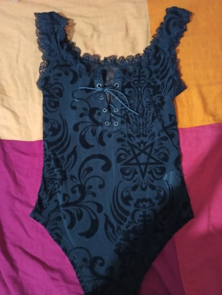Боди в живую выглядит очень красиво. У меня есть размер между S/M, zamówilam M (мой размер: обхват груди 92 см, обхват талии 72 см, обхват бедер 100 см) и тем самым, это сделано из эластичной ткани, которая хорошо ложится на тело. К сожалению, мне кажется, что под бюстом минимально маленький размер, возможно, при покупке размера L и wypróbuje, какой из этих размеров будет для меня идеальным.