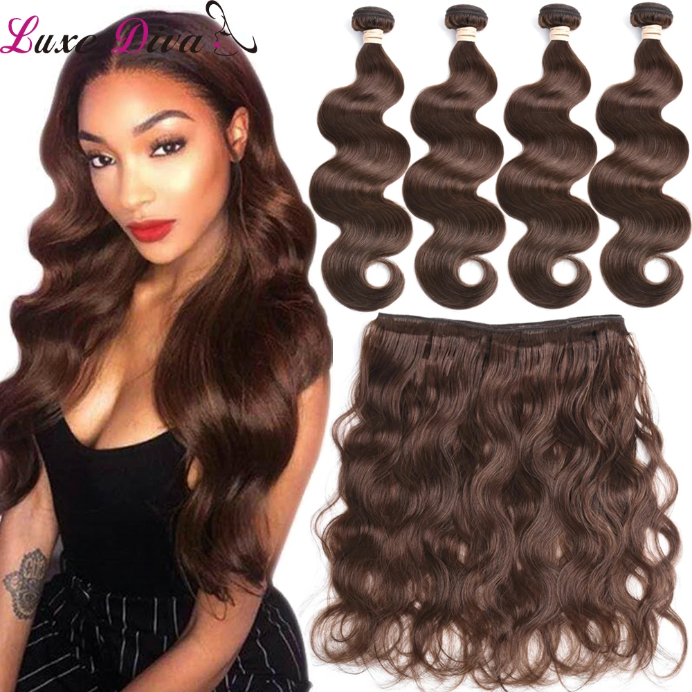 Luxediva предварительно окрашенные волнистые волосы, волнистпряди, бразильские человеческие волосы для наращивания #2 #4 светильник-коричневые волосы Remy, оптовая продажа оптом, 1-4 лота