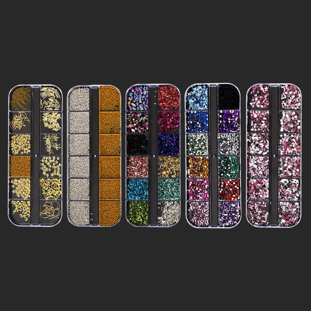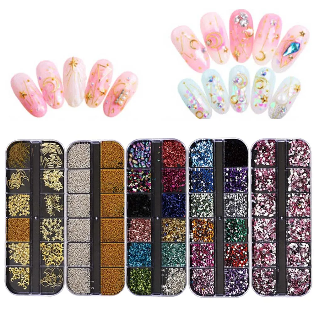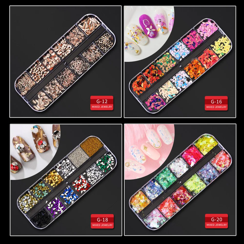 12 Сетки ногтей Блестящие Блестки 3D украшения для дизайна ногтей б...