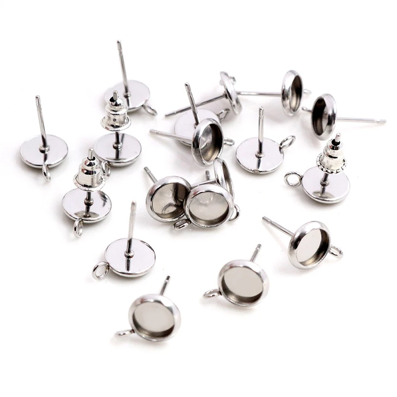 (Не выцветает) 6 мм 8 мм 10 мм 12 мм 20 шт из нержавеющей стали вертикальные висячие серьги шпильки, серьги пустыеоснование, подходят для кабошонов 6-12 мм,