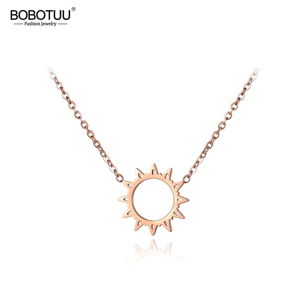 Классическое ожерелье BOBOTUU с цепочкой из нержавеющей стали, ювелирные изделия, ожерелье с подсолнухом, свадебные украшения BN18030