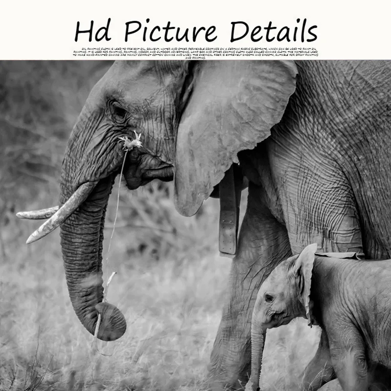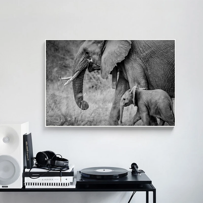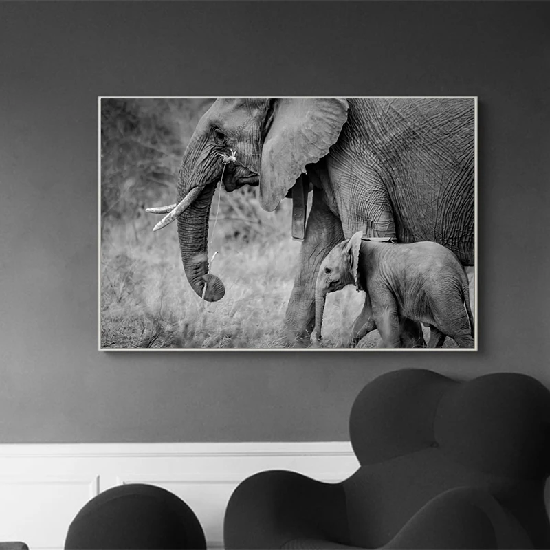 Черный и белый диких слонов, мамы, сына, дочери; Картина с рисунком животных Плакаты и принты Cuadros настенные картины для Гостиная