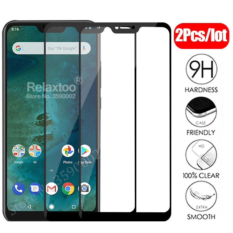 Защитное стекло для Xiaomi Mi A2A2 Lite с черной рамкой, 2 шт.
