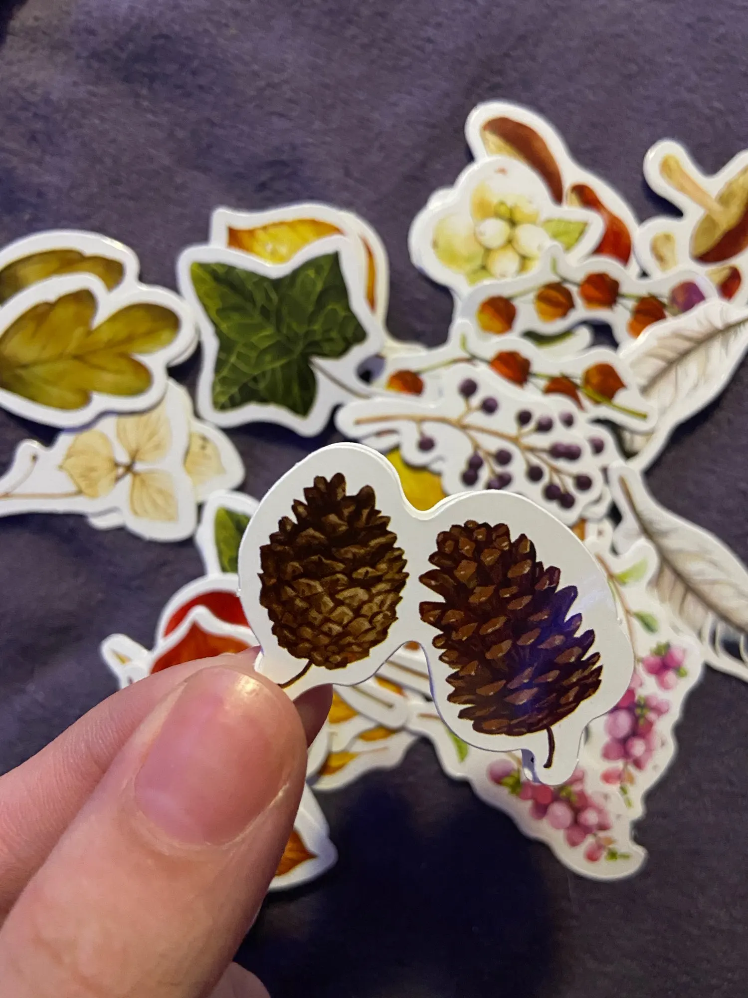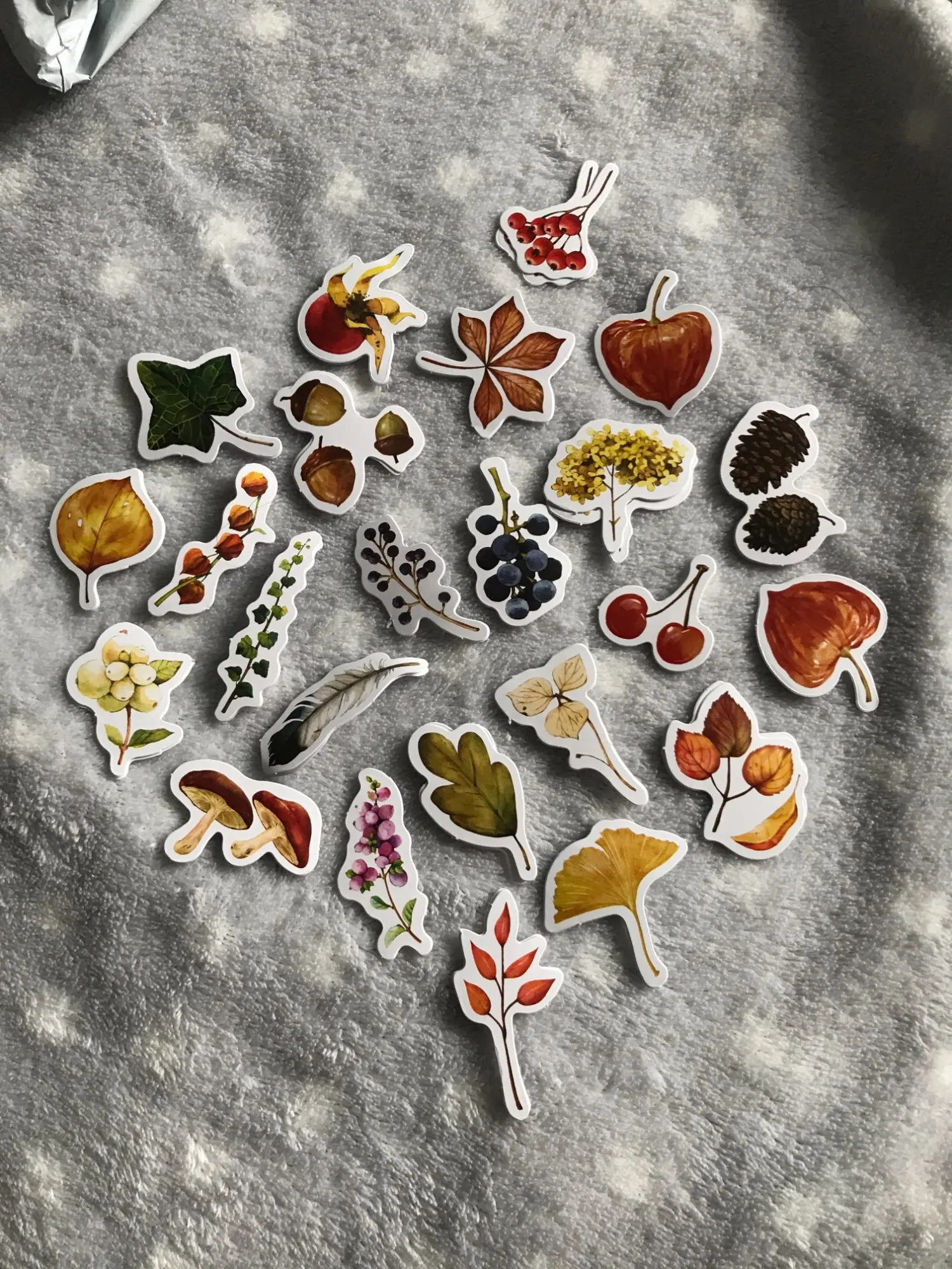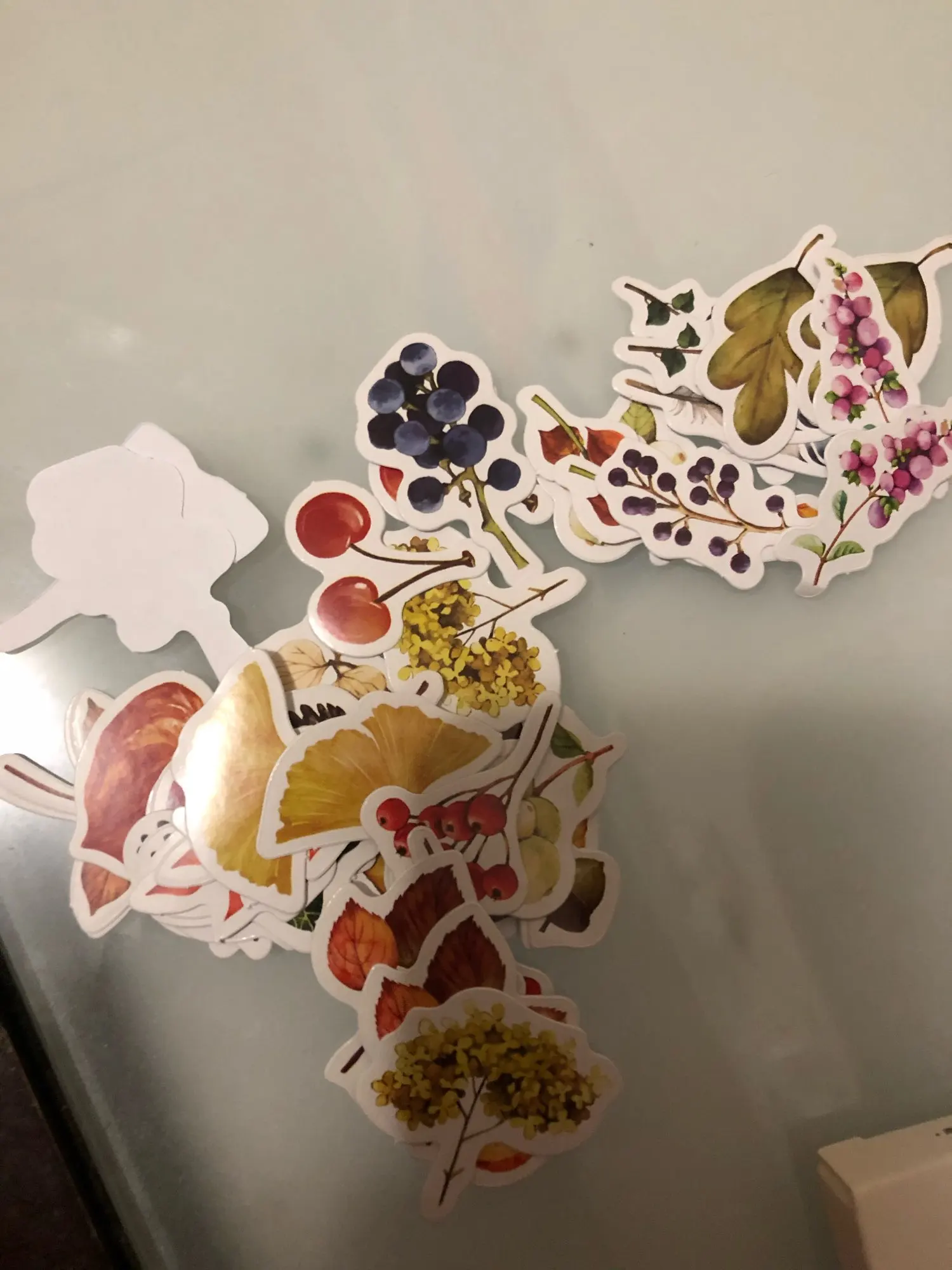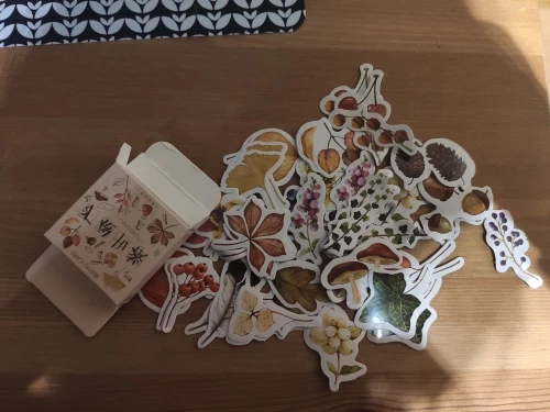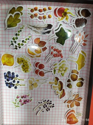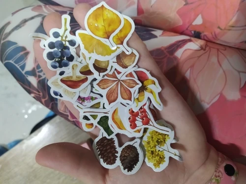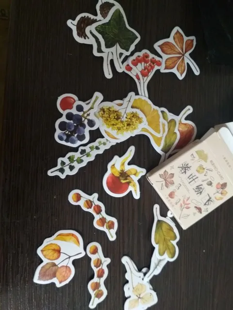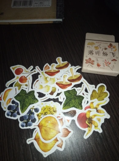 Недорогие, но очень хорошие наклейки с широким белым краем. Для осеннего оформления прекрасны будут.