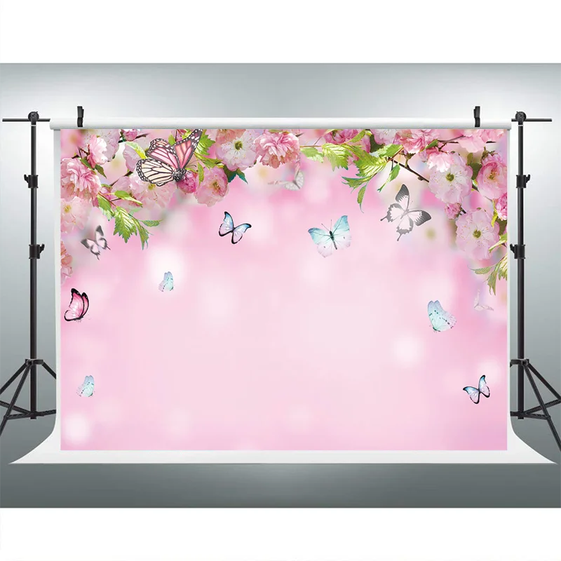 Весенний фон с цветами персика фон для фотосъемки Бабочка розовые детские фоны для фотостудии