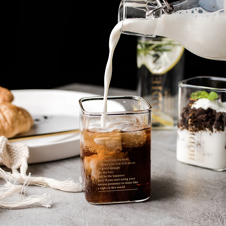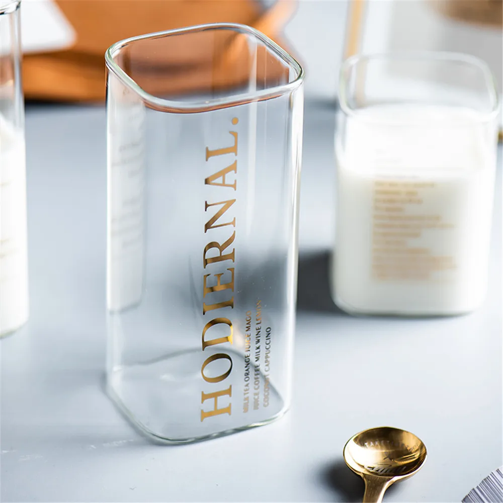 Шикарная квадратная стеклянная кружка креативная Золотая буква печать чашка для завтрака молока кофе прозрачная термостойкая посуда для напитков подарок