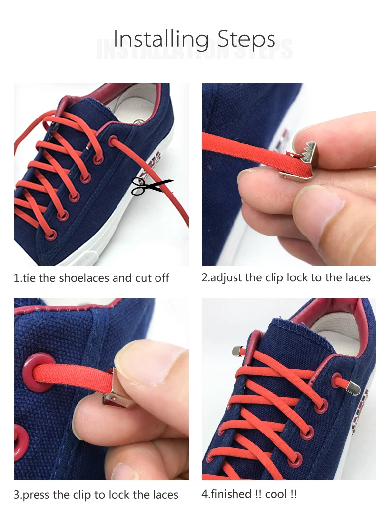 Шнурки эластичные, без завязывания, с металлической пряжкой, F093, 1 пара
