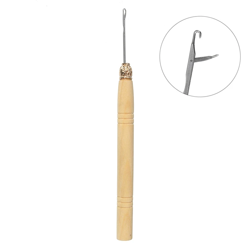 Деревянная ручка, игла, кружевной парик, вязание, микро кольцо, петля для наращивания волос, Плетеный крючок, инструменты для вязания крючком
