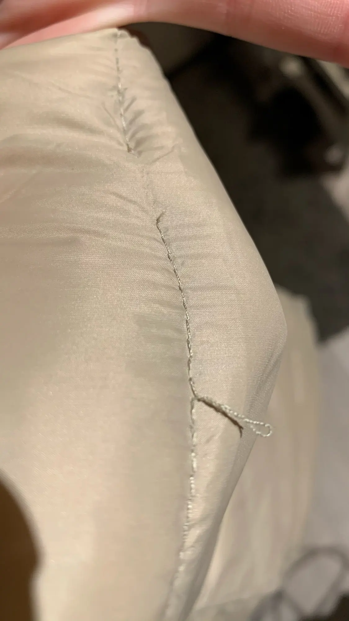 Вот такого качества швы в этой жилетке ,нитки торчат ,нить шва зажёвана и рвётся по всей жилетке !Ужасные швы !!!Буду пытаться вернуть за это деньги,потому что качество отвратительное , как это носить ?!пришло в срок,но продавец не мог отправить товар долго,примерно неделю !недовольна покупкой.
