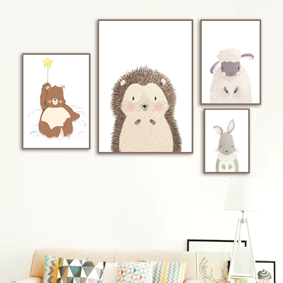 Настенная картина с изображением лисы, оленя, ежика, медведя, живот...