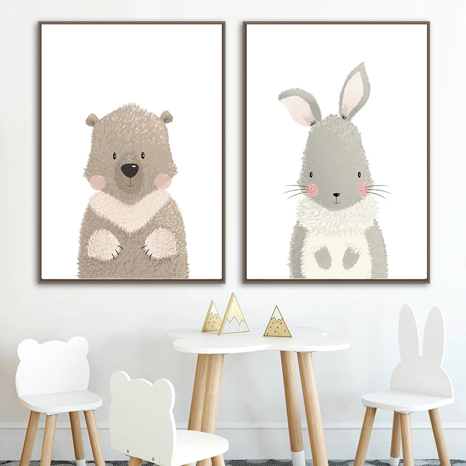 Настенная картина для детской комнаты с изображением оленя, кролика...