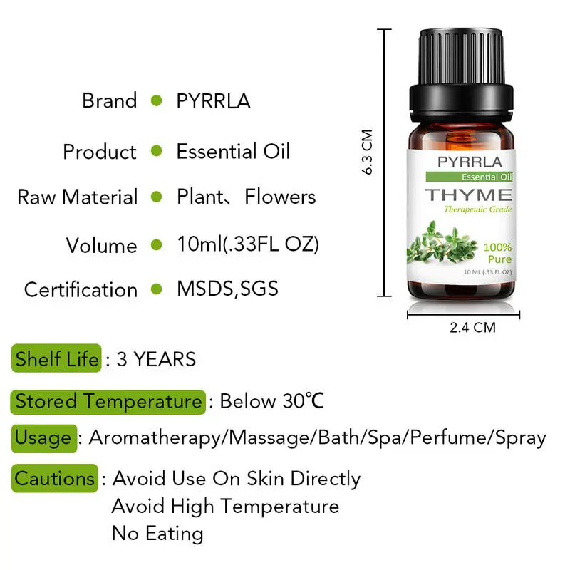Pyrrla 10 мл чистое эфирное масло массажный увлажнитель Чай дерево оранжевый розовый перечной мяты Эвкалиптовое Масло Лемонграсса бледно-лиловый имбирь аромат